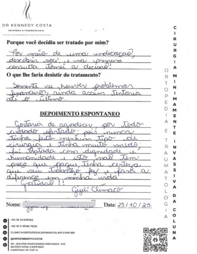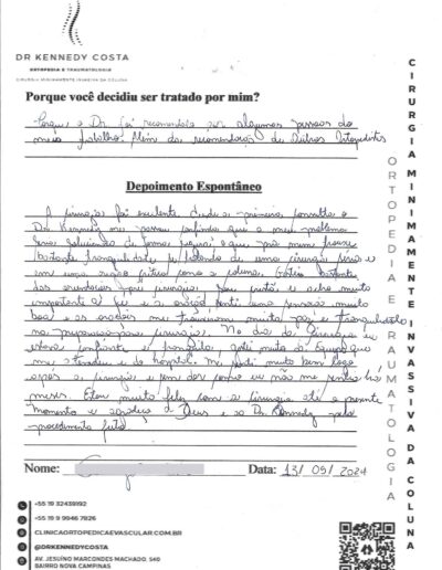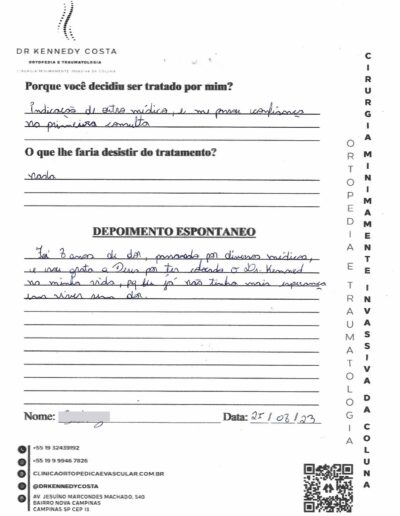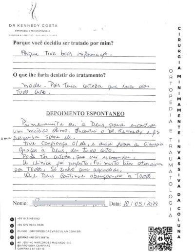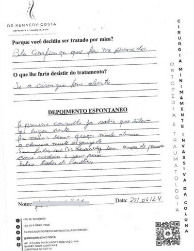 Além das avaliações no Google, aqui você encontra algumas palavras escritas à próprio punho pelos pacientes atendidos pelo Dr. Kennedy.